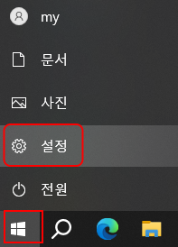 윈도우 작업표시줄에서 시작 버튼을 누릅니다.