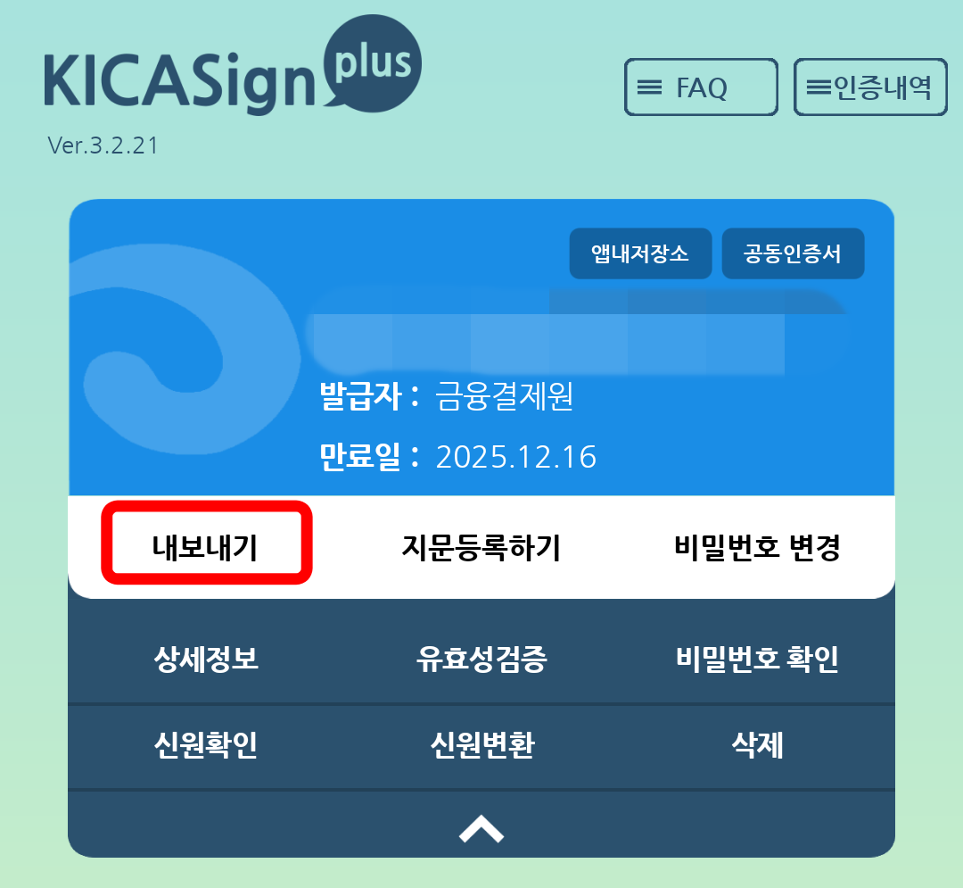 스마트폰에서 인증서를 선택한 후 내보내기를 누른다.