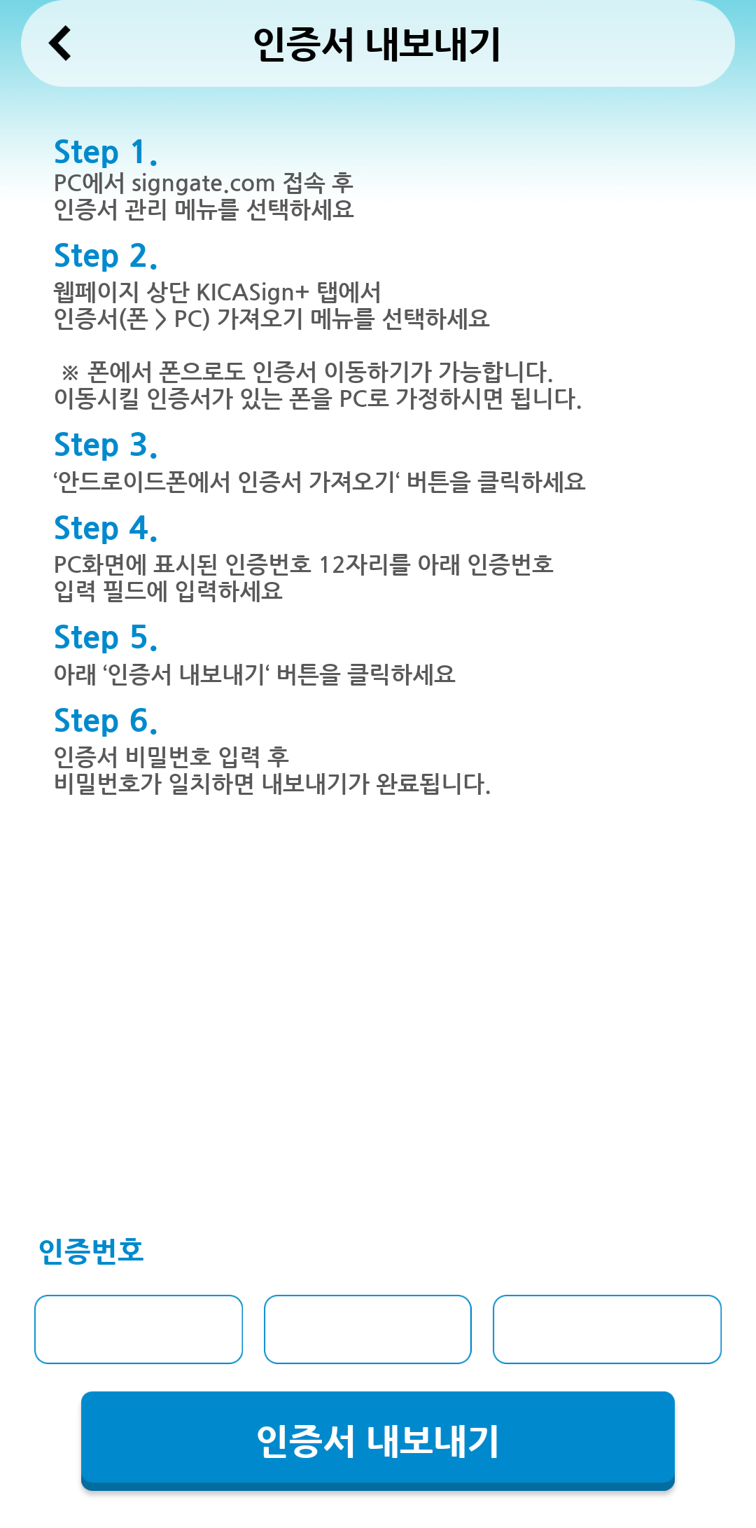 혹은 스마트폰에서 PC로 인증서를 옮기고 싶을 때