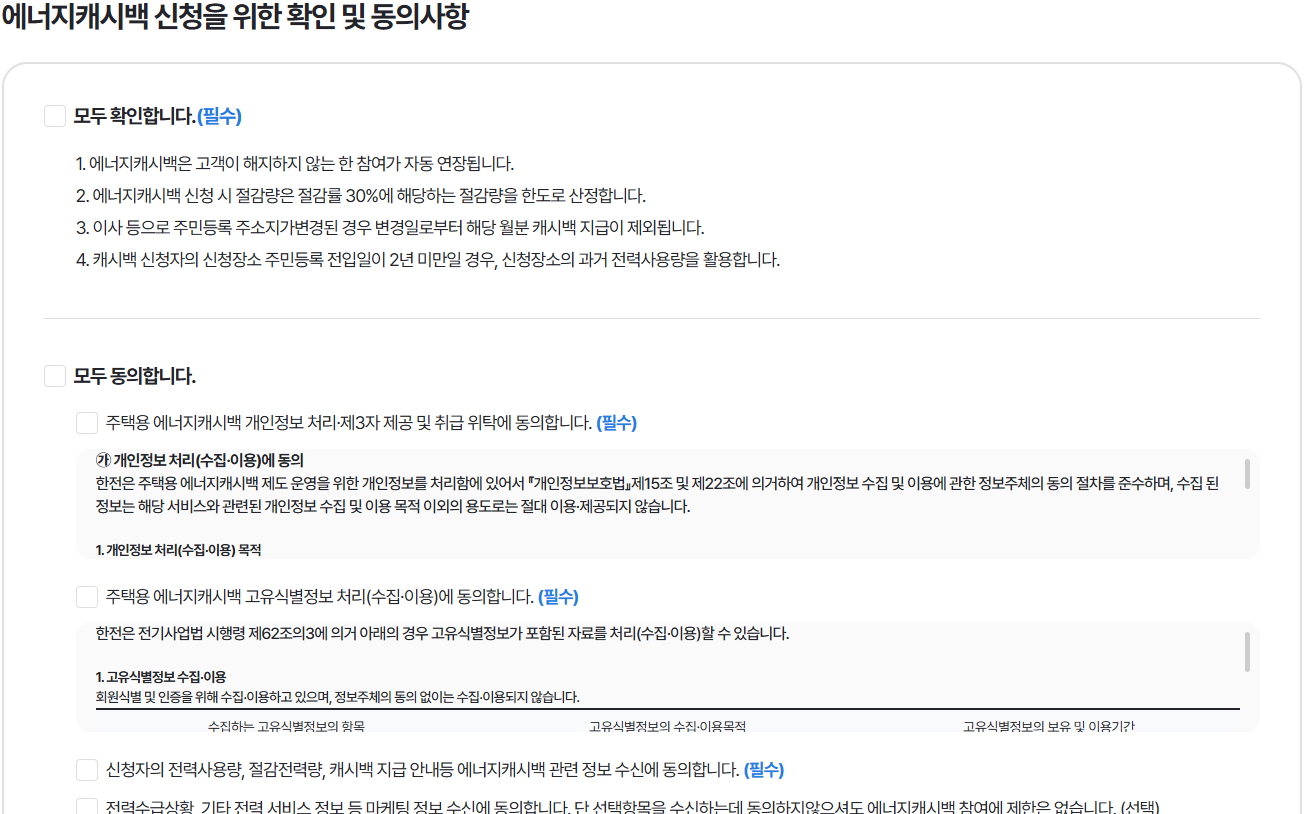 - 주택용 전기 요금 사용자만 신청 가능 (상업용 제외)
