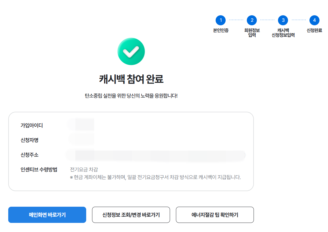 다음달 전기요금에서 차감되는 캐시백을 제공받을 수 있습니다.