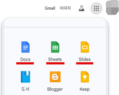 각각 MS 워드(한글과컴퓨터), 엑셀, 파워포인트와 유사한 기능을 제공합니다.