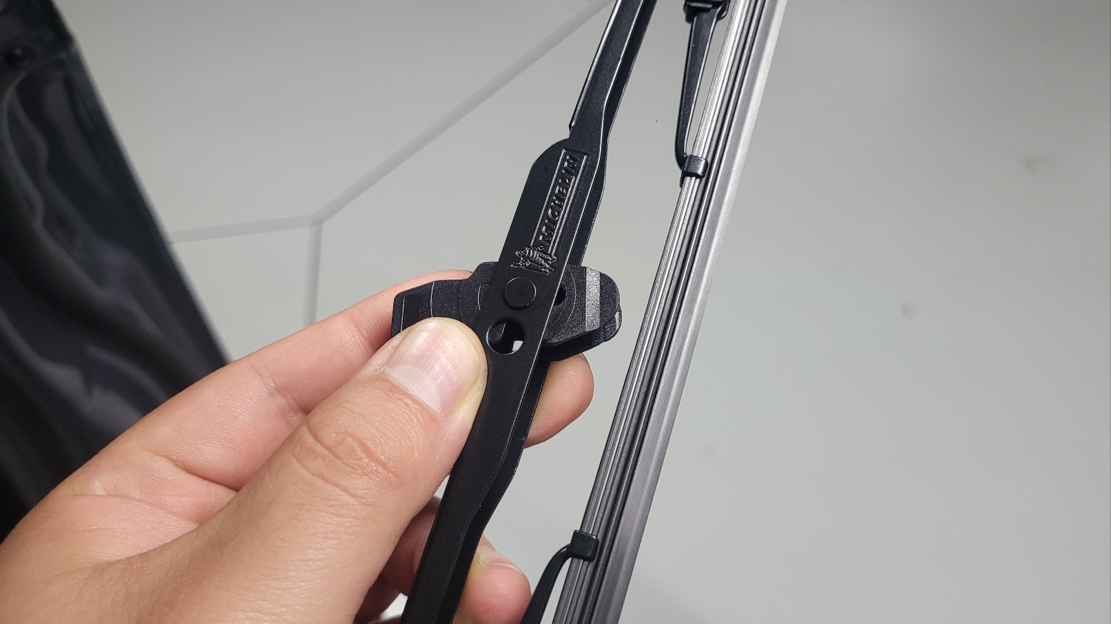 와이퍼 암에 붙어있는 작은 버튼(락 버튼)을 찾습니다.