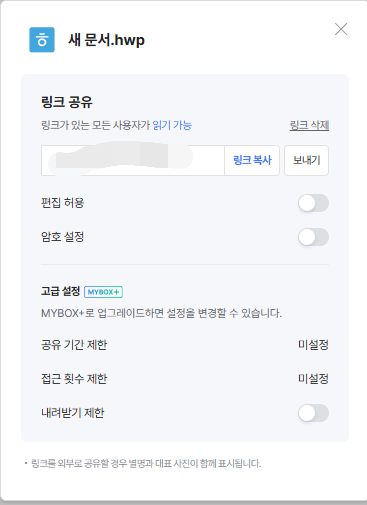 작성이 끝난 문서는 저장한 뒤, MYBOX에서 다시 클릭해 엽니다.