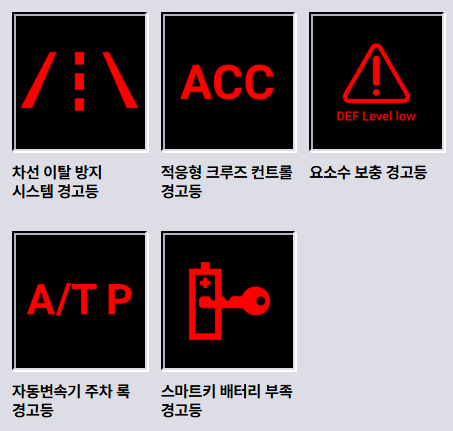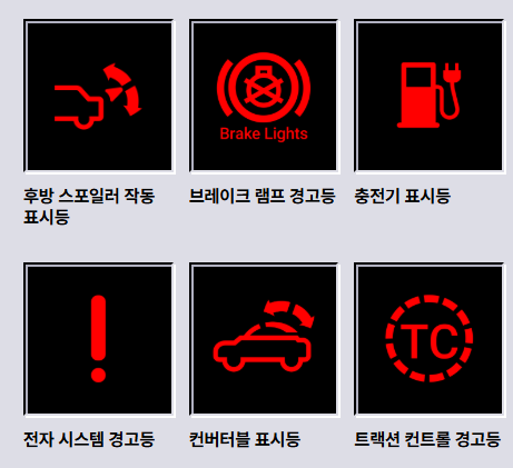 | 파란색 | 정상 작동(주의) | 상향등(하이빔) |