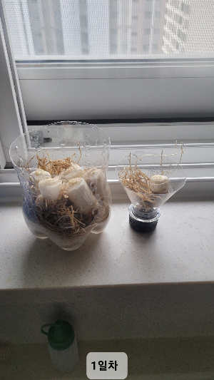 페트병 중간을 자르거나 종이컵을 준비합니다.