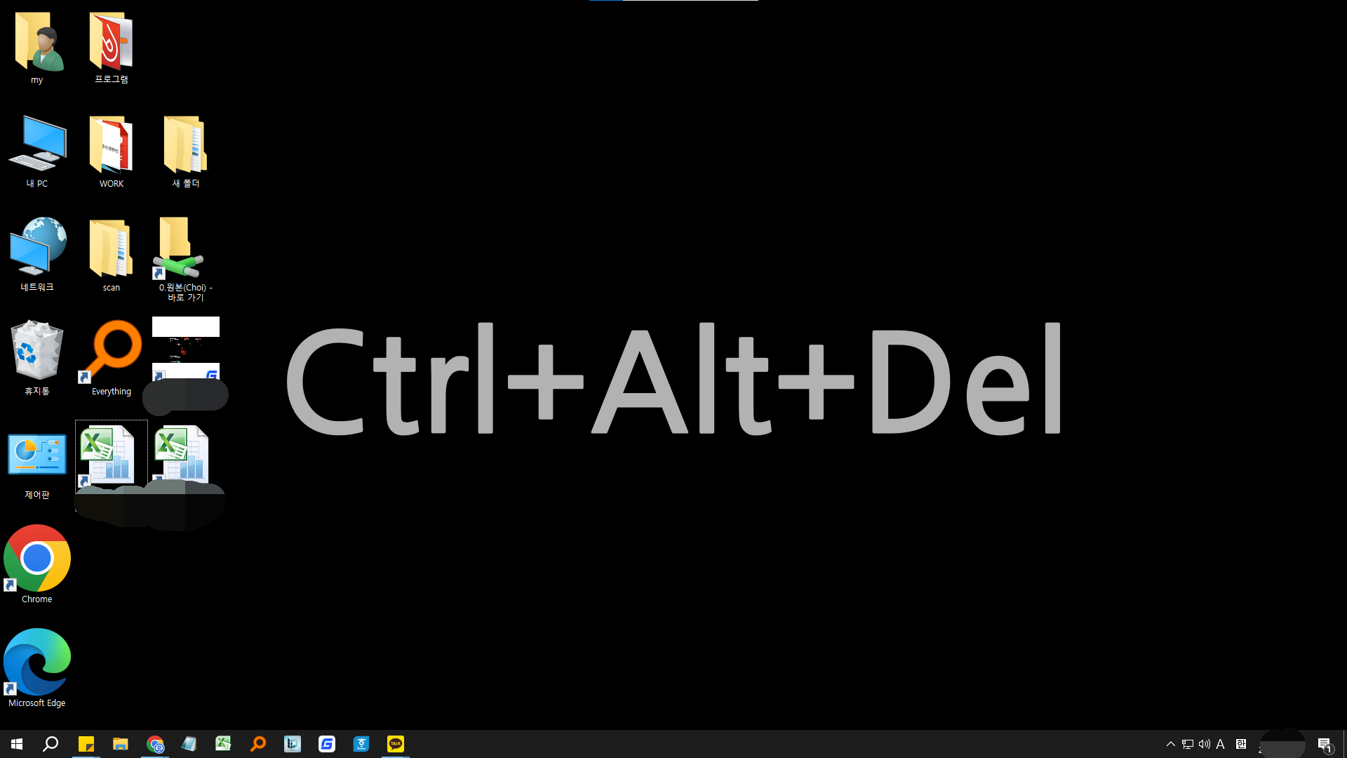 Ctrl + Alt + Del 키를 누르면 작업관리자를 실행할 수 있습니다.