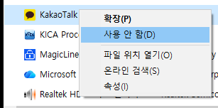 필요하지 않은 프로그램은 우클릭 → 사용 안 함을 선택하면 됩니다.