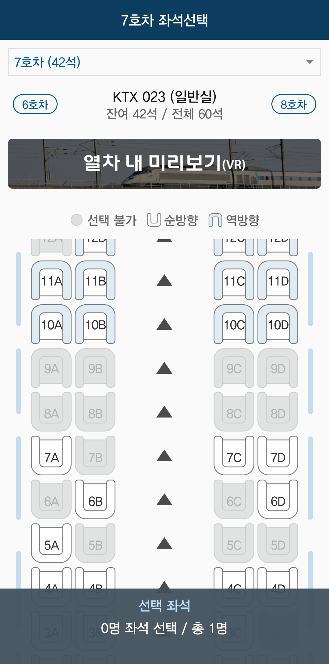 마지막으로 좌석선택을 누르면 자신이 타고싶은 호차와