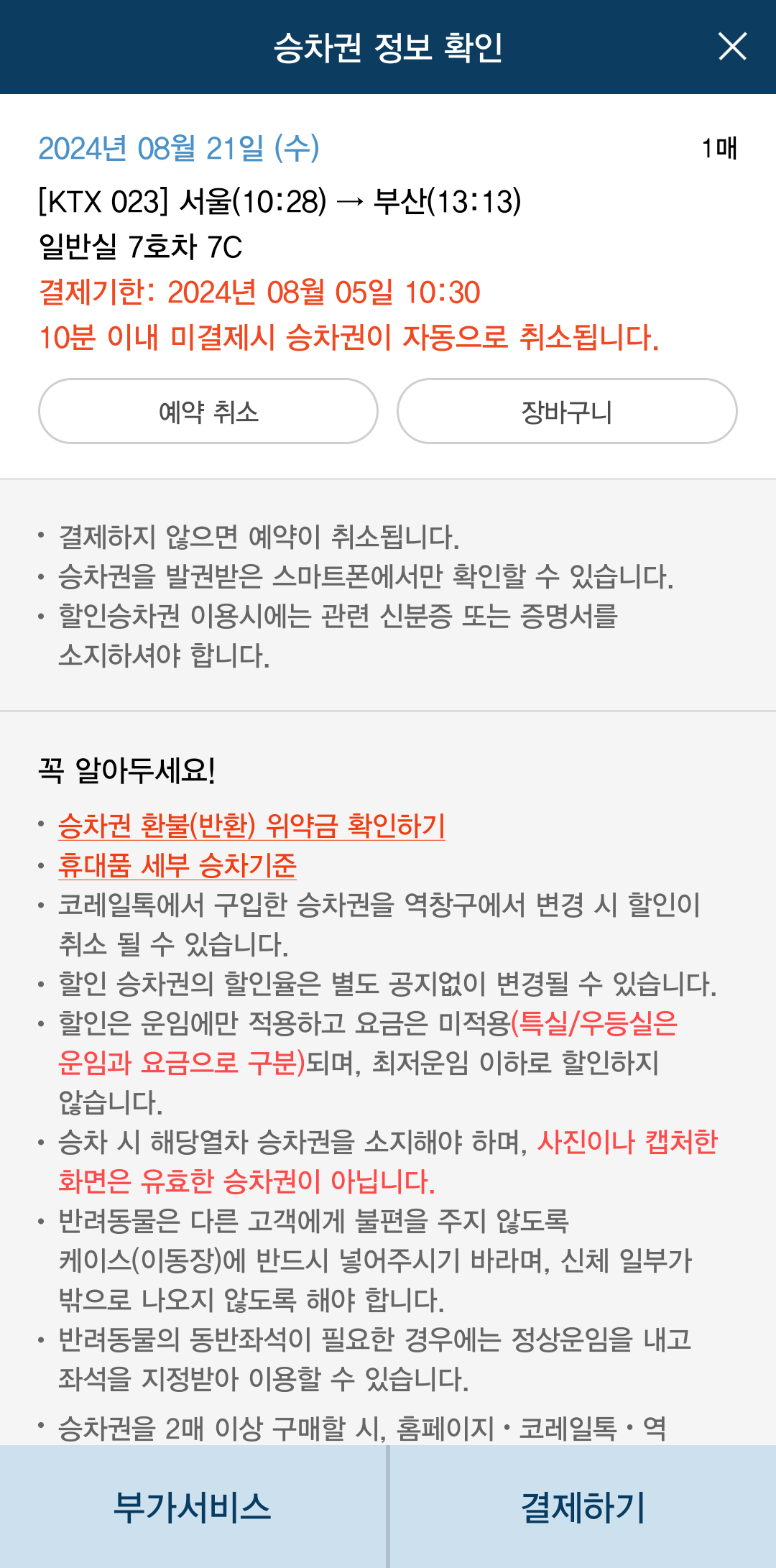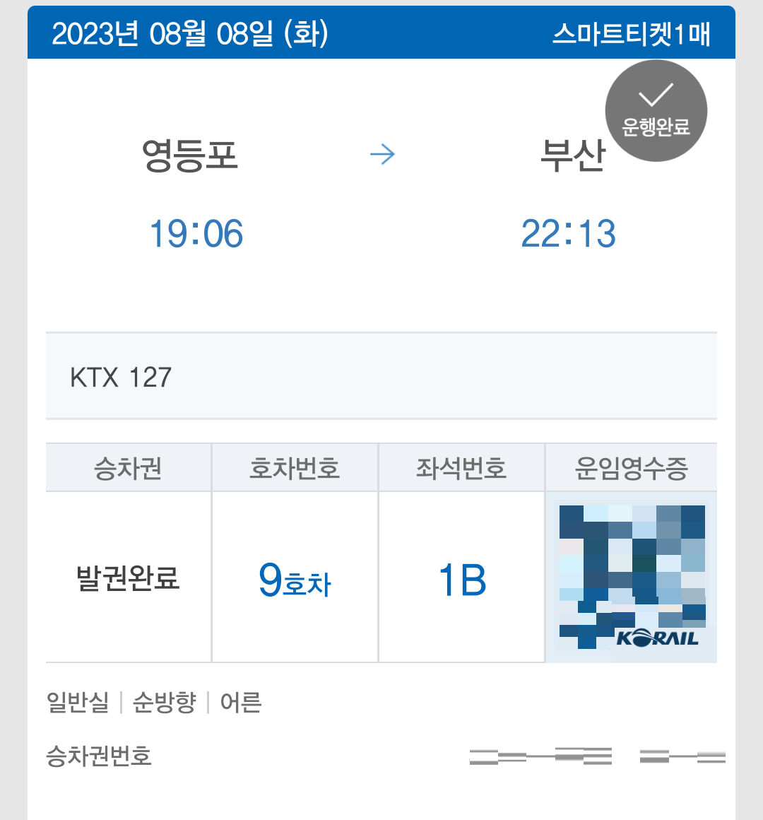 보이듯이 행선지와 시간이 보이고, 호차랑 좌석번호가 나옵니다.