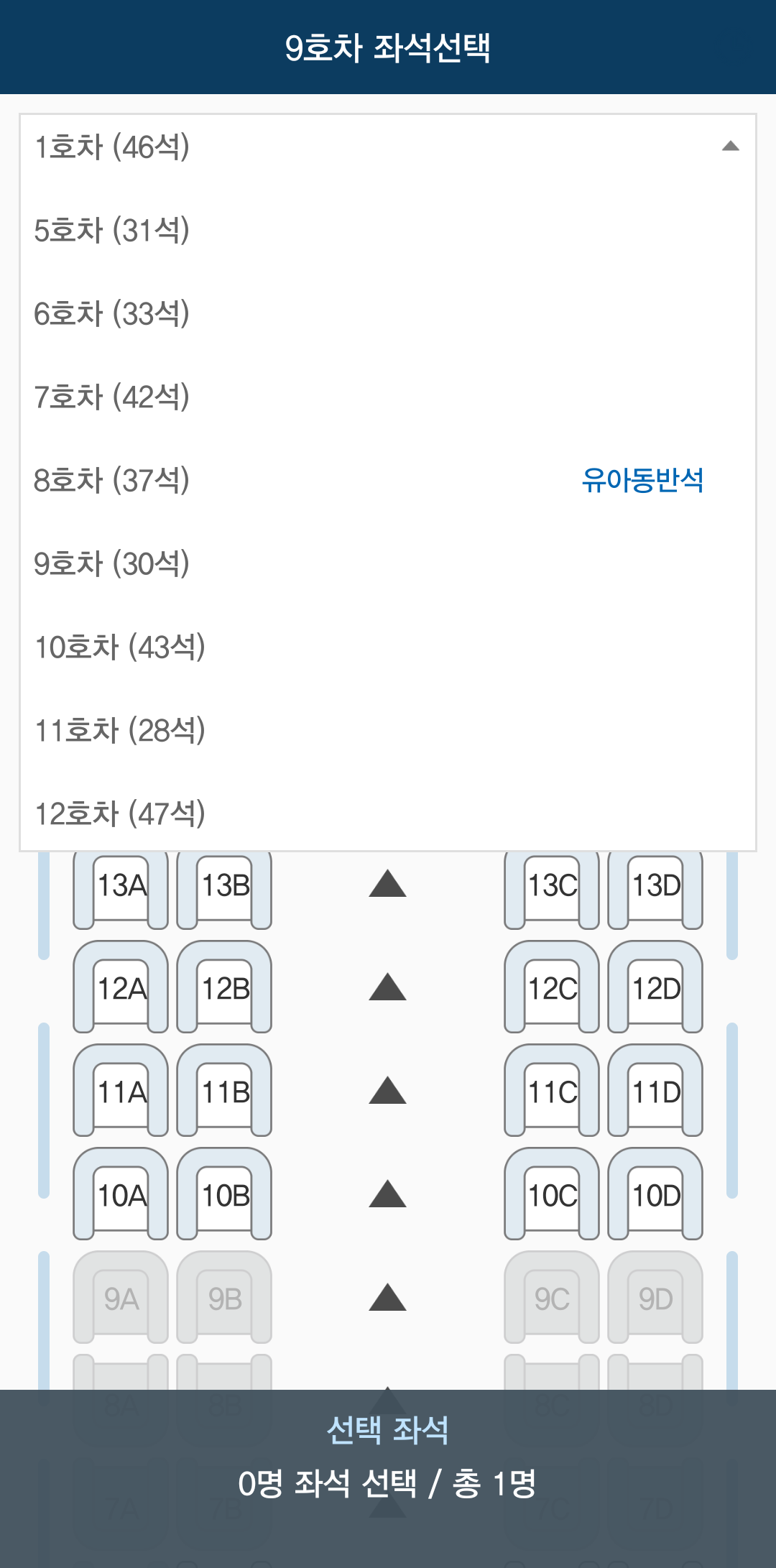 대체로 좌석은 일반석이거나 유아동반만 선택하고,