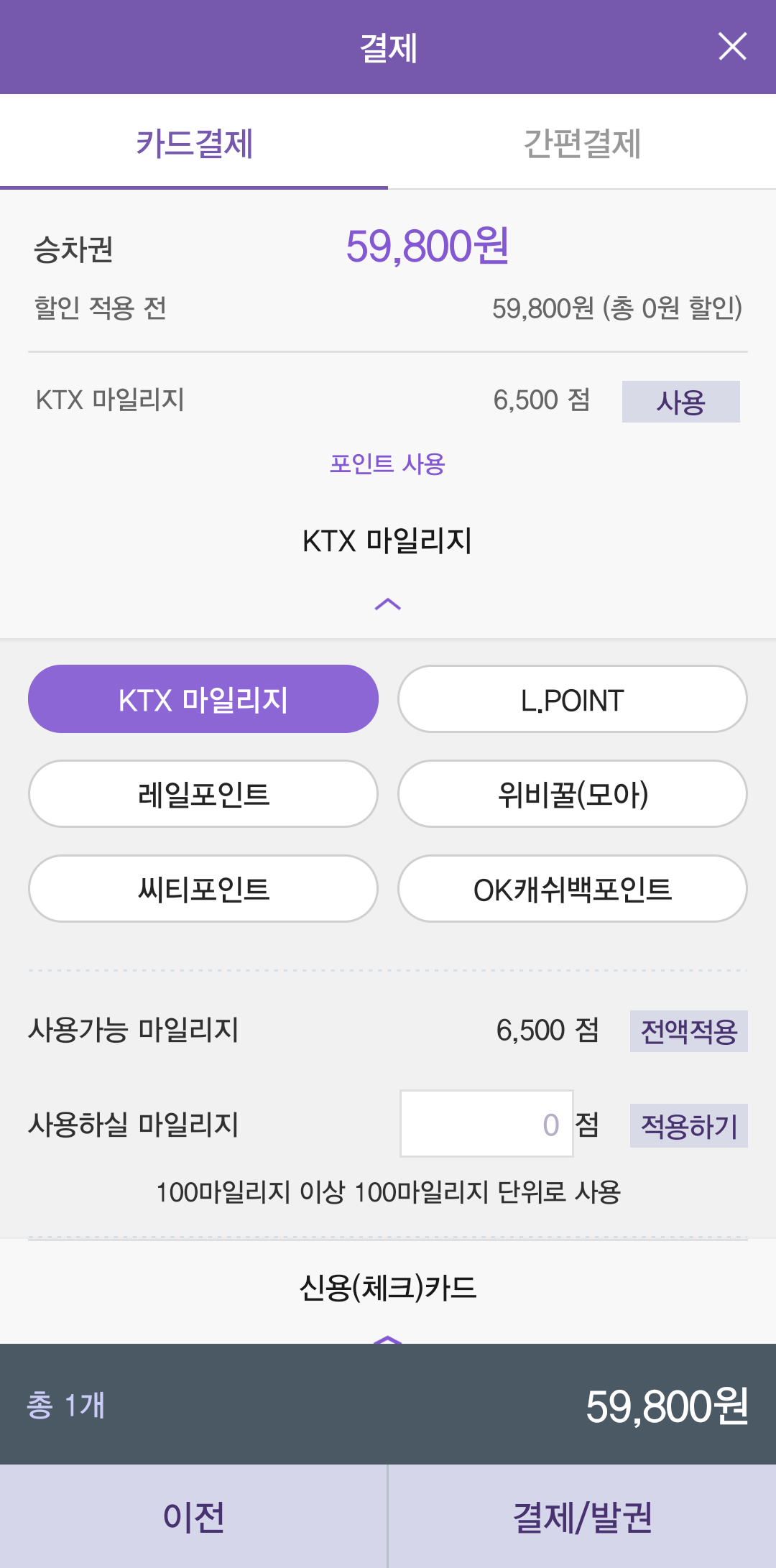 KTX를 타고 난 이후 금액에 따라 마일리지가 적립되는 방식이에요.