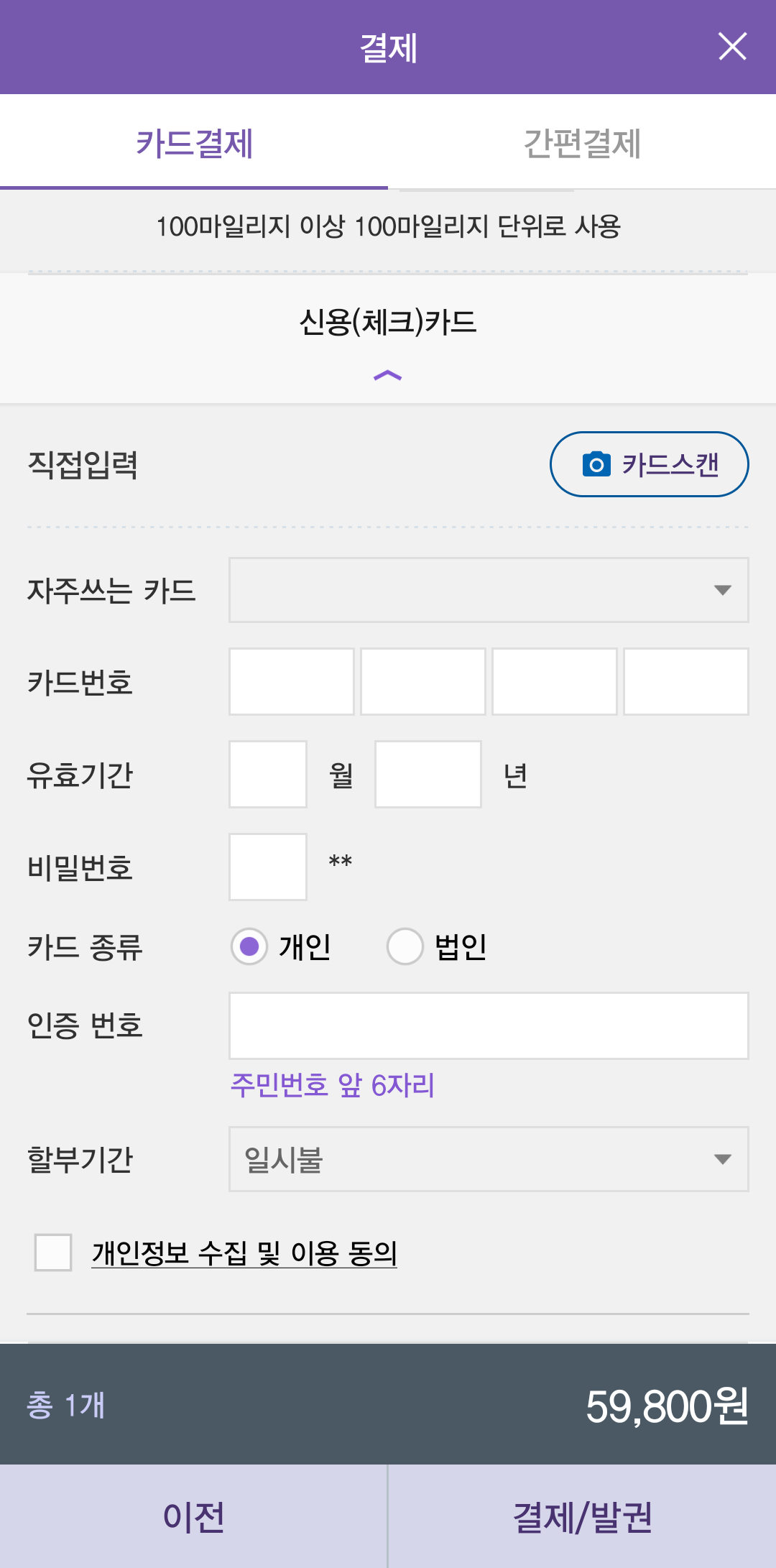 신용(체크)카드를 사용하면 카드번호와 유효기간등을