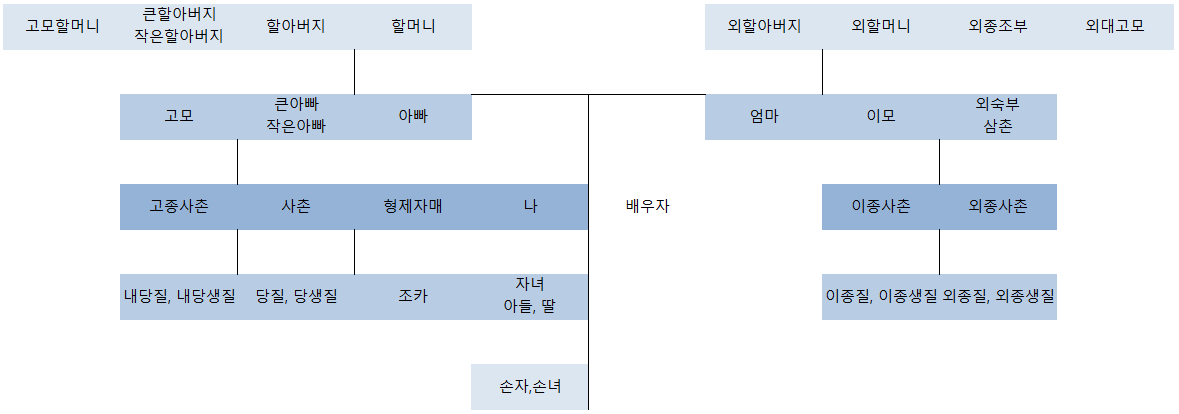 요즘 시대에선 6촌 이상의 가족은 잘 만나지 못하는 경우가 많으므로 주로 만나는 가족들의 범위와 함께 호칭에 대해 알아보도록 하겠습니다.